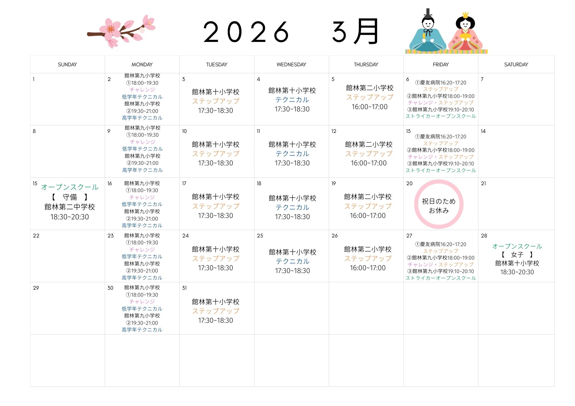 PDFのダウンロードはこちらから→3月スケジュール
